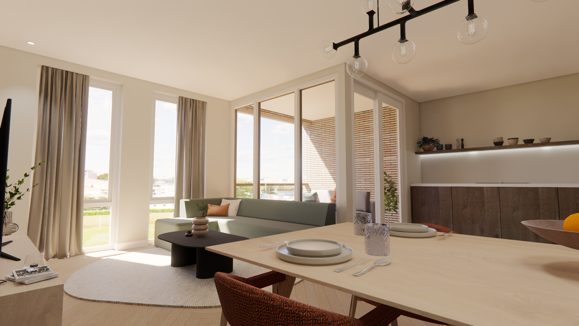 Bij alle woningen en appartementen kun je d.m.v. balkonbeglazing bij minder mooie dagen de loggia’s gebruiken als een verlenging van de woonruimte creëren en kun je het hele jaar rond van deze slimme maar heerlijke buitenruimte.